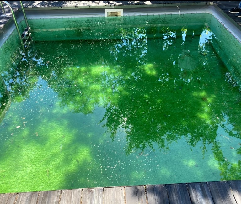Avant notre intervention, le bassin présentait les signes classiques du temps :